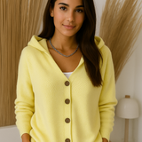 El cárdigan Amanda combina suavidad y estilo casual en una prenda versátil. Con botones frontales y capucha, aporta un aire relajado pero cuidado, perfecto para llevar en cualquier ocasión con total comodidad.