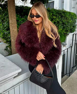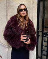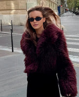 El abrigo de piel sintética burdeos de lujo es una prenda versátil que se adapta fácilmente del día a la noche. Combínalo con jeans para un paseo relajado o úsalo sobre un vestido elegante para un look impactante. Su diseño audaz te hará sentir segura y con estilo, añadiendo un toque sofisticado a cualquier atuendo.