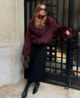 Aby / Abrigo de piel sintética color burdeos de lujo
