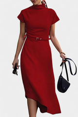 El vestido Florencia destaca por su silueta A-line relajada y su diseño asimétrico que aporta carácter sin perder elegancia. Con cuello alto estructurado y mangas cortas, es una prenda pensada para quienes buscan un look urbano con estilo sobrio y contemporáneo. Perfecto para días activos con un toque refinado.