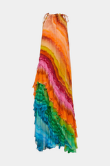 El vestido Tori está diseñado para destacar con un vibrante estampado tie-dye y volantes en cascada que aportan movimiento y textura. Su escote halter y silueta suelta en georgette de viscosa crean una estética fluida, femenina y llena de energía. Perfecto para celebraciones especiales o noches inolvidables.