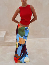This skirt features a bright, bold abstract print. Pair it with the matching cardigan or tank for an effortless ensemble, or style it with a simple T-shirt and sneakers.