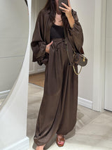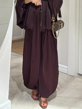Brown Drawstring Wide-leg Casual Pants