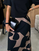 Colorblock Print Satin Skirt