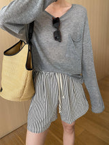 Pinstripe Drawstring Versatile Shorts