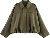 - Features: Oversized Faux Suede Streetwear Pilot Jacket featuring lapel collar, dramatic bat sleeves, shoulder straps, dropped shoulders, and a pleated hem secure with a zip-up closure and snap button for an effortlessly cool oversized look providing cozy warmth and versatile style perfect for any season